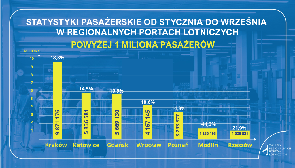 W dość stabilnym dotychczas rankingu statystyk pasażerskich pojawiły się zmiany. Kraków jest niekwestionowanym liderem z niemal 10 milionami pasażerów w ciągu trzech kwartałów. Za małopolskim lotniskiem znajduje się lotnisko w Katowicach, a Gdańsk spadł na trzecią pozycję. To prawdopodobnie wynik dobrych wakacyjnych miesięcy, kiedy Katowice obsługują dużą liczbę lotów czarterowych.
